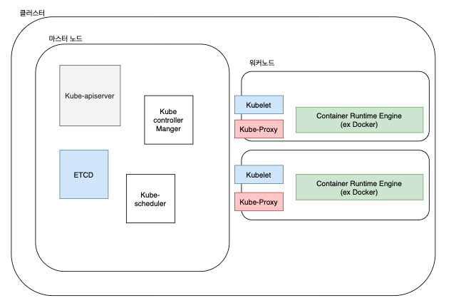 마스터 노드의 구성 요소로는 kube-apiserver, etcd, kube-scheduler, controller-manager 등이 있다.